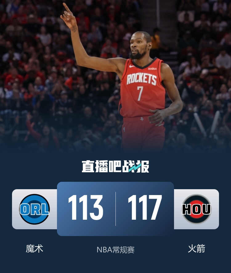 加时赛双方交替拿分悬念留到最后,最后时刻阿门的扣篮和杜兰特的招牌跳投帮助火箭建立起3分领先奠定胜局。最终,火箭加时力克魔术迎来4连胜。